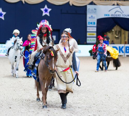 Im Anschluss an das Finale im Eggersmann Junior Cup treffen sich die kleinsten Aktiven im Sattel. In der Führzügelklasse präsentiert von Radio Arabella. „Wenn sich die besten Reiter der Welt treffen, dürfen die kleinen Pferdefreunde nicht fehlen. Wir möchten mit unserem Engagement den Reitsport für die Kleinen fördern und den Kindern bei der Führzügelklasse eine Kulisse bieten, sich mit ihrem Pony vor einem reitbegeisterten Publikum zu präsentieren“, erklärt Janine Kohlhase von Radio Arabella ihre Begeisterung für die MUNICH INDOORS. Seit vergangenem Jahr ist die Prüfung zur Kostüm-Führzügelklasse avanciert. Der Kreativität sind kaum Grenzen gesetzt, bei der Premiere waren Asterix und Obelix, Superman, Schneewittchen, Indianer, Harry Potter und ein Weihnachtsoutfit vertreten und natürlich waren auch die Ponys verkleidet. Zuckerschock garantiert!