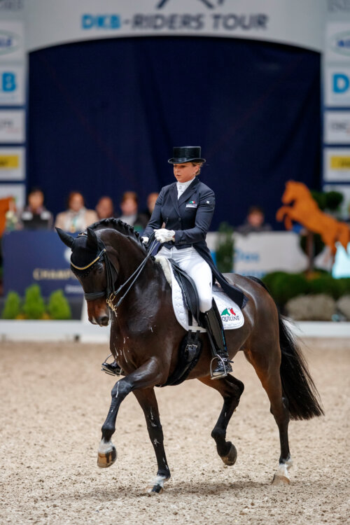 Zu satten zehn Prozent Vorsprung zelebrierte das mit Team-Olympiagold dekorierte Paar Piaffen, Passagen und Pirouetten. „Dass ich jetzt hier gleich mit dem ersten Turnier nach der Verletzungspause über 80 Prozent komme, habe ich nicht erwartet, aber ich weiß, dass das Pferd das kann“, freute sich das 48-jährige Championatskadermitglied. „Er war heute nochmal mehr bei mir als im Grand Prix, hatte noch zwei, drei kleine Fehler, also es gibt sogar noch Luft nach oben. Das Gefühl ist einfach gigantisch auf diesem Pferd.“ Platz zwei ging an Catherine Haddad-Staller (USA) mit Semper Fidelis. Dritter wurde Uwe Schwanz (Miesbach) mit Hermes.