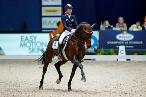 München – Gleich mit einem sportlichen Highlight ging es am Donnerstagmittag in das 20. Jubiläum der MUNICH INDOORS in der Münchner Olympiahalle. Der Preis der Liselott und Klaus Rheinberger Stiftung, ein Grand Prix de Dressage, lieferte gleichzeitig die erste Starterhälfte für die Teilwertung für die MEGGLE Champion of Honour.