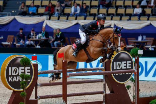 München – Hellwach mussten sie sein, die Teilnehmer im IDEE KAFFEE-Preis, der internationalen Zwei-Phasen-Springprüfung im Rahmen der 20. MUNICH INDOORS in der Münchner Olympiahalle. In dieser Prüfungsform sind zwei Parcours in einem integriert - die erste Hälfte entspricht einem verkürzten Normalparcours. Wird dieser fehlerfrei absolviert, darf gleich weiter in die zweite Hälfte geritten werden, die dann als schneller Stechparcours über den Sieg entscheidet.