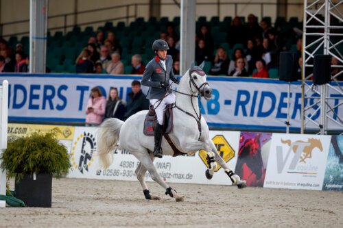Klar ist das Cashmoaker DSP, aber ich habe inzwischen zwei weitere Pferde, die auf diesem Niveau gehen können und sie werden Cashmoaker DSP entlasten. Das sind Carlo S und High Voltage. Carlo S ist sehr groß und ebenfalls ein Schimmel. High Voltage ist eine sehr ehrgeizige Stute und will wie Cashmoaker immer auf die andere Seite. Alle drei haben gemeinsam, dass sie sehr viel Vermögen haben.