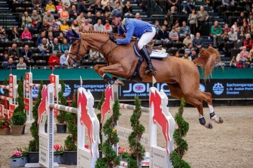 In Leipzig lief es für den Stall Ahlmann ganz besonders gut. Im Finale der Siebenjährigen sicherte sich Angelique Rüsen (Herborn) den Top-Score fürs Ranking. Mit dem dunkelbraunen Hengst von Lord Pezi Junior aus einer Cornet Obolensky-Mutter verwies die Bereiterin im Stall Ahlmann hauchdünn Marcus Ehning (Borken) und den Holsteiner Hengst Cupfer (Casall x Landos) auf Platz zwei. Dritter wurde Henrik Griese (Lemgo) mit dem Westfalen Zinordanos (Zento x Lordanos).
