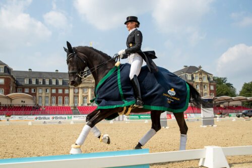 Münster – Die vierte Station der außergewöhnlichen wie prestigeträchtigen Dressurserie MEGGLE Champion of Honour machte beim „Turnier der Sieger“ im Herzen von Münster Halt. Vor der herrlichen Schloss-Kulisse entschied der Grand Prix am Turnierdonnerstag über die Punktevergabe fürs Ranking der laufenden Saison. Dabei kam es zu einem kuriosen und sehr harmonischen Ergebnis.