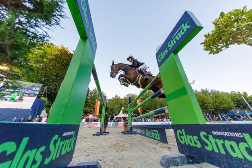 Davon zeigte sich auch Martin Strack begeistert, Geschäftsführer der Glas Strack innovations GmbH & Co. KG, der zum ersten Mal beim internationalen Drei-Sterne-Turnier auf dem Schützenplatz dabei war. Sein erster Eindruck: „Gewaltig! Toll! Ich bin begeistert von dem, was die Reiter mit ihren Pferden hier zeigen.“