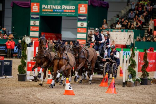 Was ist los, wenn um Mitternacht die La-Ola-Welle durch das Publikum in der Leipziger Messe geht? Es gibt nur eine Antwort: Die Gespannfahrer sind los in der Sparkassen-Trophy. Bei allerbester Stimmung auf den Rängen entschied Multi-Champion Boyd Exell (AUS) diese Einlaufprüfung für den FEI Driving World Cup am Sonntag für sich. Platz zwei ging an Bram Chardon (NED). Dritter wurde der Schweizer Jerome Voutaz.