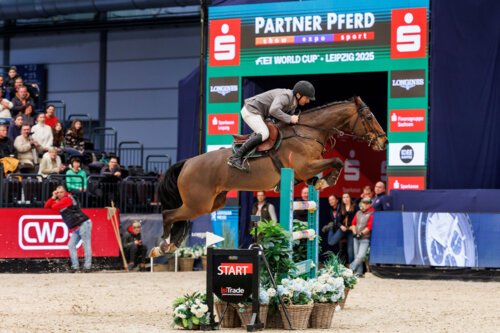 Für die Reiterinnen und Reiter der ostdeutschen Landesverbände ist es jedes Jahr ein absolutes Saisonziel: Die Qualifikation zum Finale des PARTNER PFERD CUP. Das Finale ist nämlich eine echte Institution am Donnerstagabend bei der PARTNER PFERD, präsentiert von der Sparkasse Leipzig und der Sparkassen-Finanzgruppe Sachsen. Der gebürtige Rumäne Florin Filip mit Wohnsitz in Bad Schmiedeberg nutzte in diesem Jahr den kleinen Vorteil als letzter Starter im Stechen und flitze mit seinem erst 10-jährigen Holsteiner Chicago zum Sieg: „Ich hatte schon auf dem Abreiteplatz das Gefühl, dass er heute Null geht. Im Stechen habe ich dann gar nicht viel nach der Konkurrenz geguckt, das macht mich eher nervös. Ich habe einfach meinen Plan durchgezogen“, strahlt Filip. Platz zwei ging an Magnus Schmidt (Naumburg) mit Sanchez K. Dritter wurde Janne Woldt (Börde-Hakel) mit DSP Charlien H. Das Paar hatte kurz zuvor das Finale im PARTNER PFERD Junior Cup für sich entschieden – fette Beute also für den 19-Jährigen.