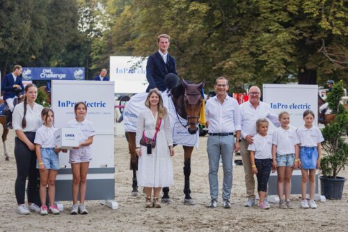 Paderborn – Der dritte Tag voller Sonnenschein bei der OWL Challenge. Im sportlichen Highlight am Samstagnachmittag ertönte zur Siegerehrung die niederländische Nationalhymne. Der junge Niederländer Lars Kuster überholte das restliche Starterfeld in den letzten Zügen der Prüfung und siegte mit seiner elfjährigen KWPM-Stute Heaven of Romance im InPro electric Championat von Paderborn, das gleichzeitig als Qualifikation zum Großen Preis am Sonntag galt. Platz zwei ging knapp dahinter an den lange in Führung liegenden Lokalmatador Tim Rieskamp-Goedeking (Steinhagen) im Sattel seiner auch elfjährigen Westfalenstute Pepina G. Dritter wurde Gerben Morsink (NED) mit zehnjährigen Carsey Z. Die zahlreichen Zuschauer auf dem Schützenplatz sahen tollen Sport bei herrlichem Sommerwetter. Insgesamt gelang es 17 Teilnehmer:innen strafpunktfrei im von Peter Schumacher gebauten Parcours zu bleiben.