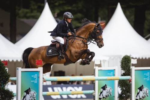 Ruben Arroyave blickt auf eine erfolgreiche Woche bei der OWL Challenge zurück: Bereits am Vortag gewann er in der Mittleren Tour den Preis der dSPACE GmbH. Der 48-jährige Kolumbianer rangiert derzeit auf Platz 214 der Weltrangliste und trainiert seit etwa drei Monaten im Stall von Heinrich Engemann in Deutschland. Die beiden kennen sich bereits seit 11 Jahren, und Engemann beschreibt ihn als einen „echten Pferdemann“. Engemann zeigte sich sehr stolz über die Zusammenarbeit, die sich mit diesem Erfolg erneut ausgezahlt hat.